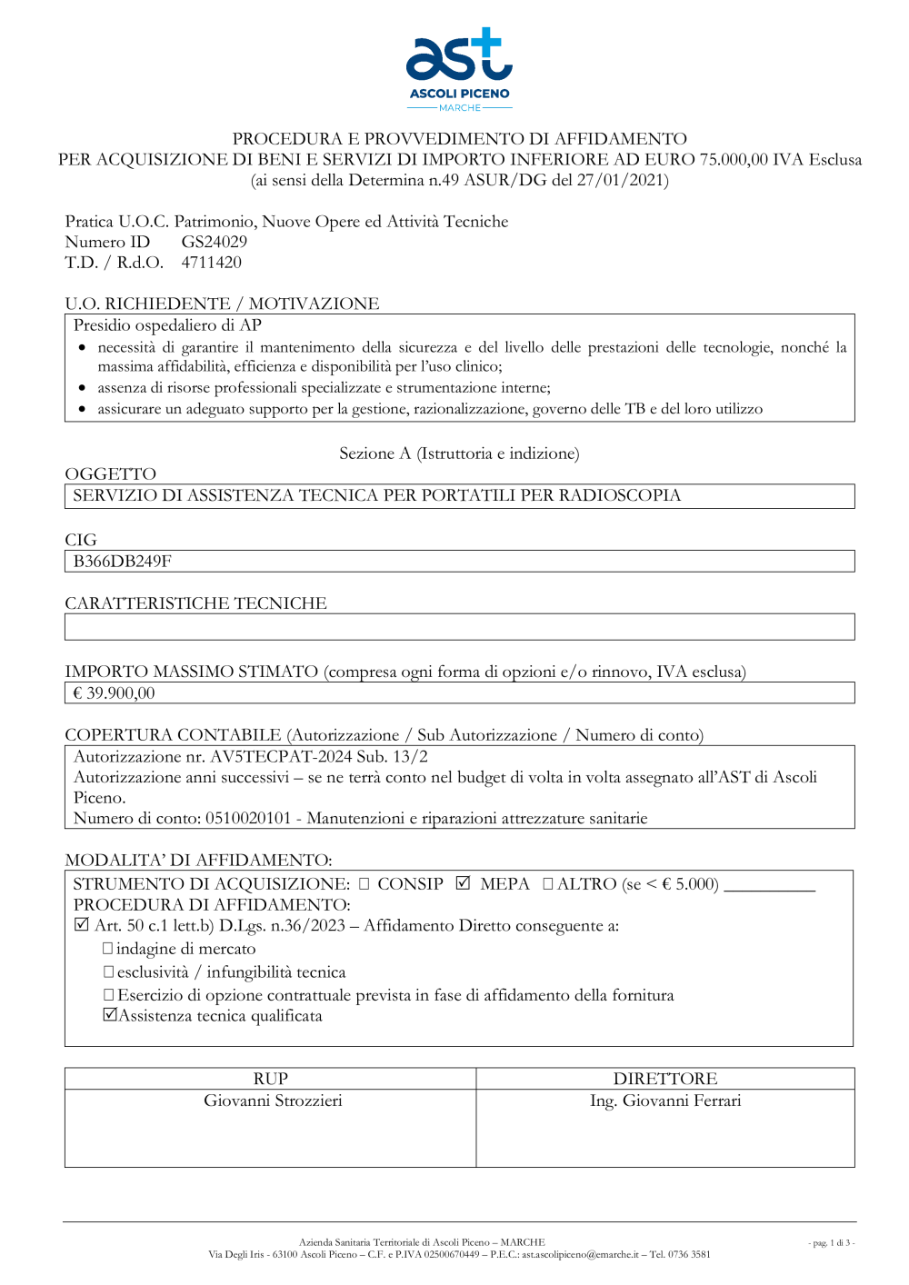- 2024SCHEDA AFFIDAMENTO SERVIZIO DI ASSISTENZA TECNICA PER PORTATILI PER RADIOSCOPIA