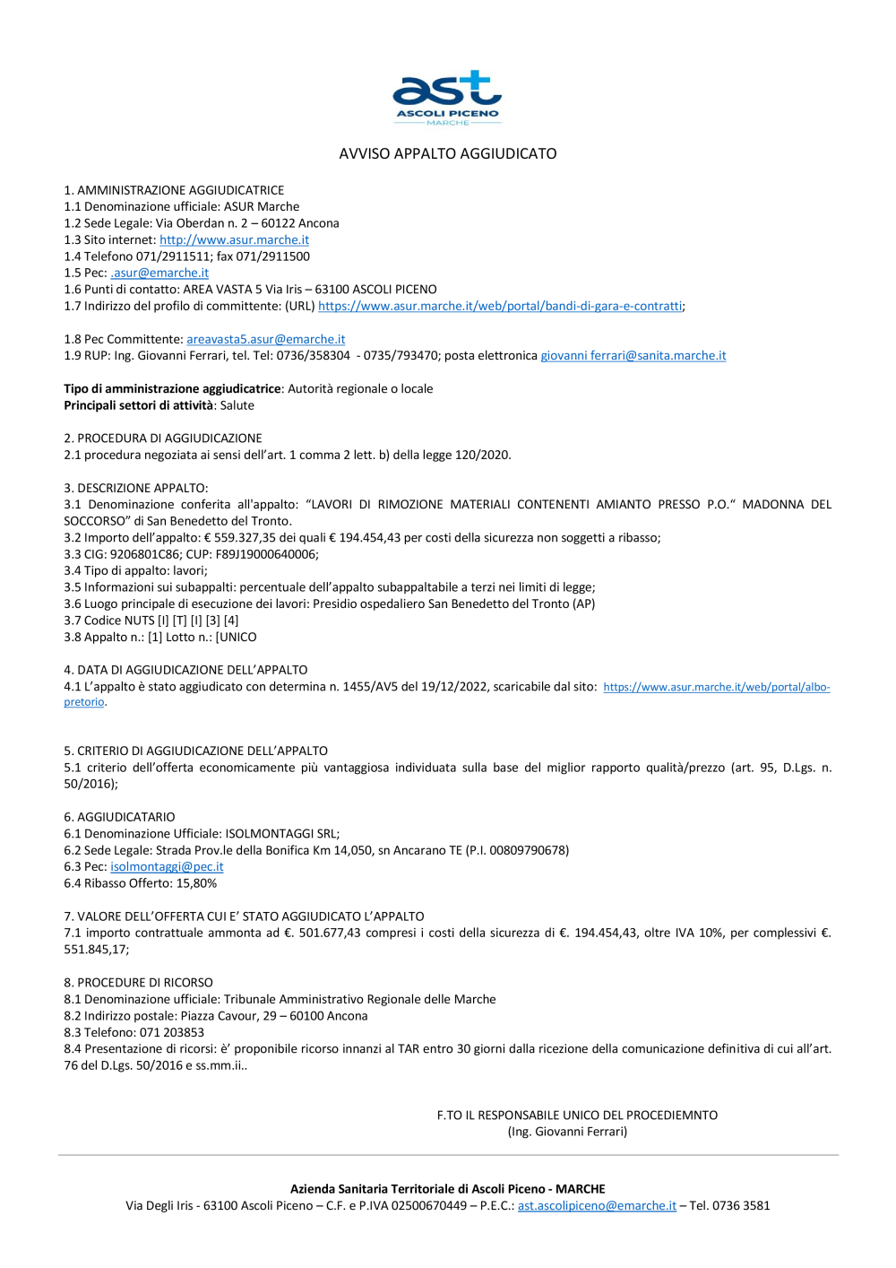 - LAVORI RIMOZIONE MATERIALI AMIANTO OSPEDALE MADONNA DEL SOCCORSO