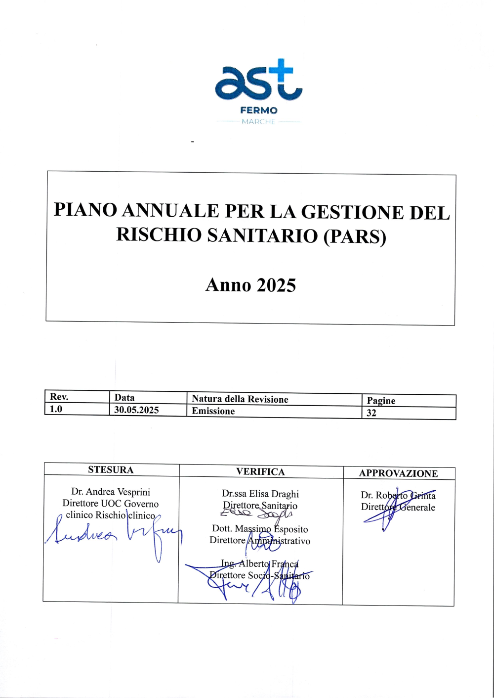 - PIANO ANNUALE PER LA GESTIONE DEL RISCHIO SANITARIO (PARS) ANNO 2025