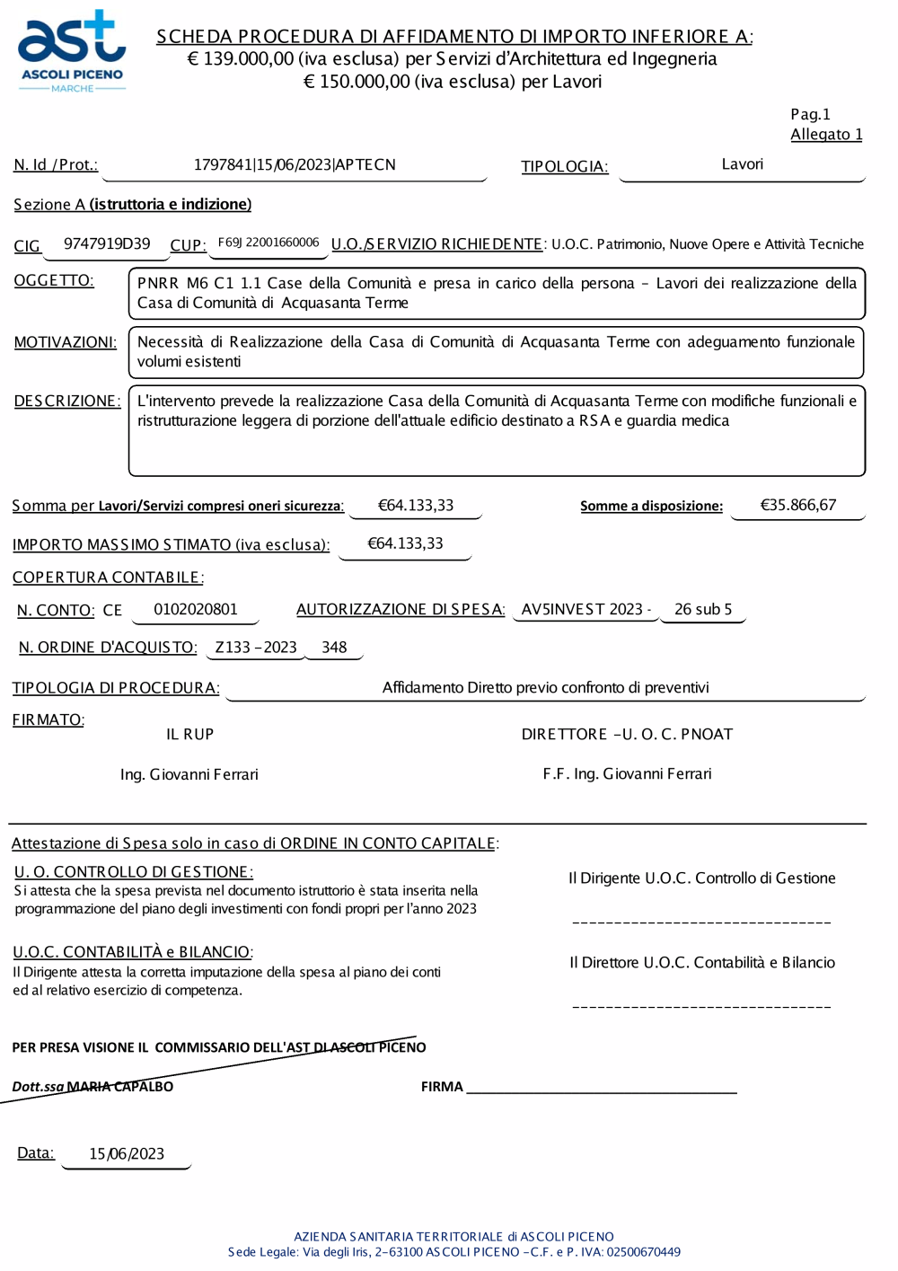- LAVORI REALIZZAZIONE CASA DI COMUNITA' DI ACQUASANTA TERME PNRR
