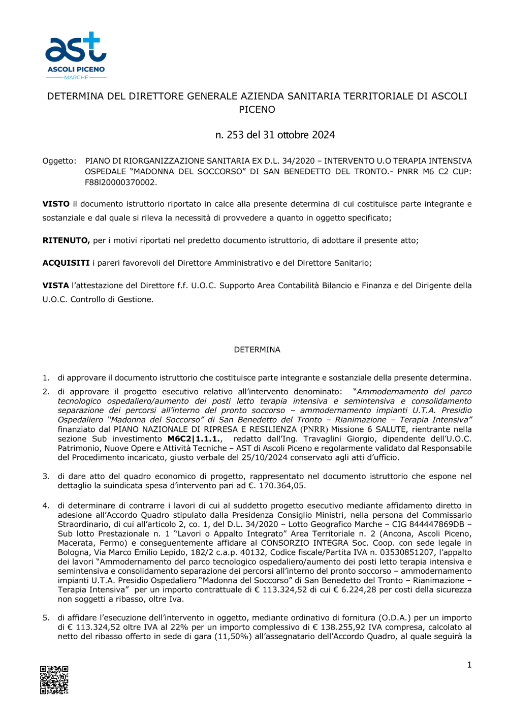 2024PIANO DI RIORGANIZZAZIONE SANITARIA EX DL34.2020 INTERVENTO UO TERAPIA INTENSIVA PNRR