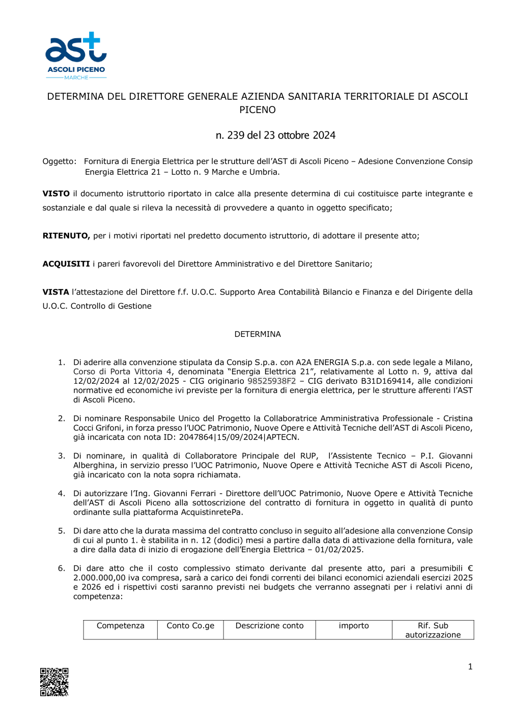 2024ADESIONE CONSIP FORNITURA ENERGIA ELETTRICA PER STRUTTURE AST