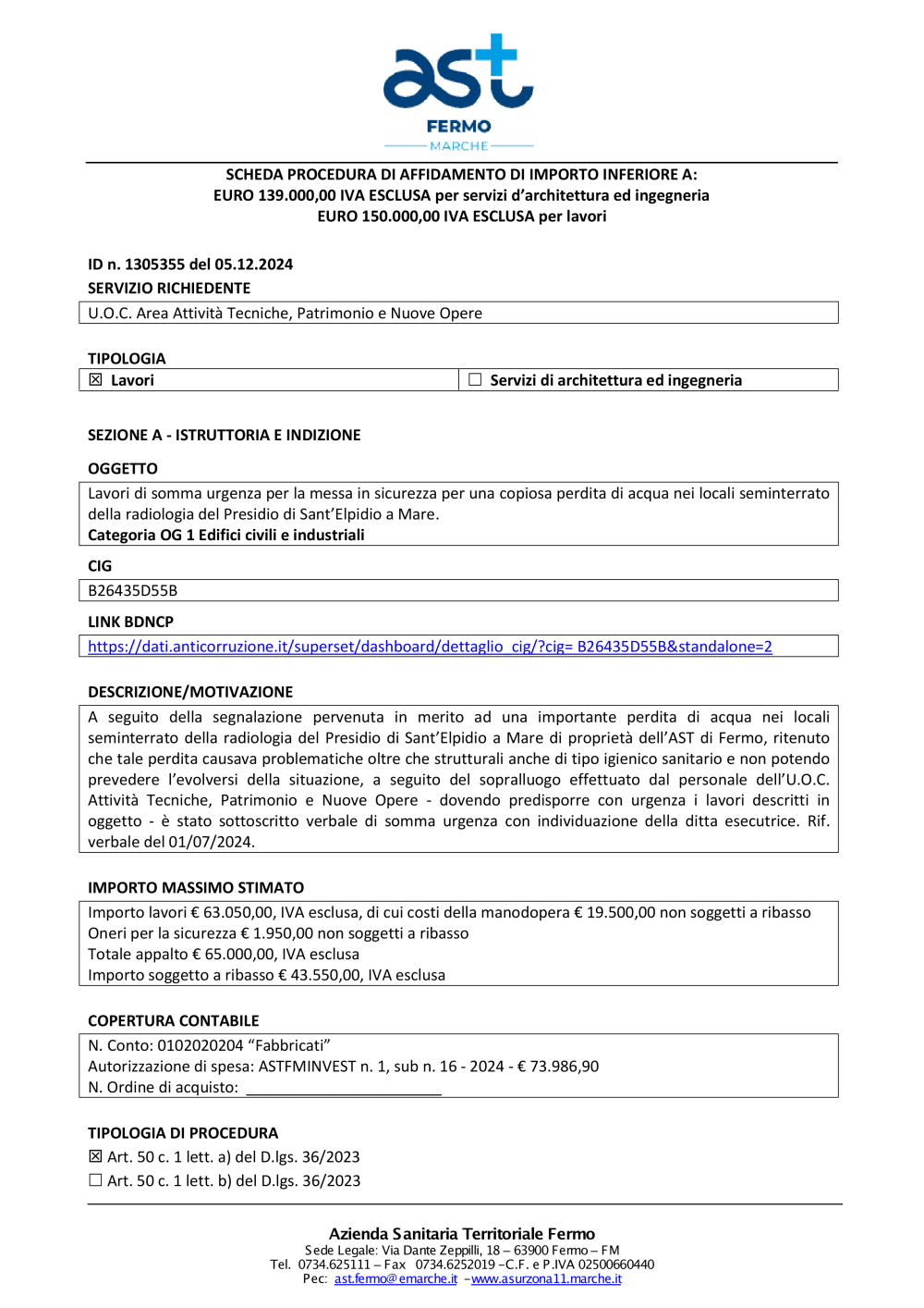 ID n. 1305355 del 05.12.2024 - COSTRUZIONI 2G SRLS - 37 TD MEPA 2024