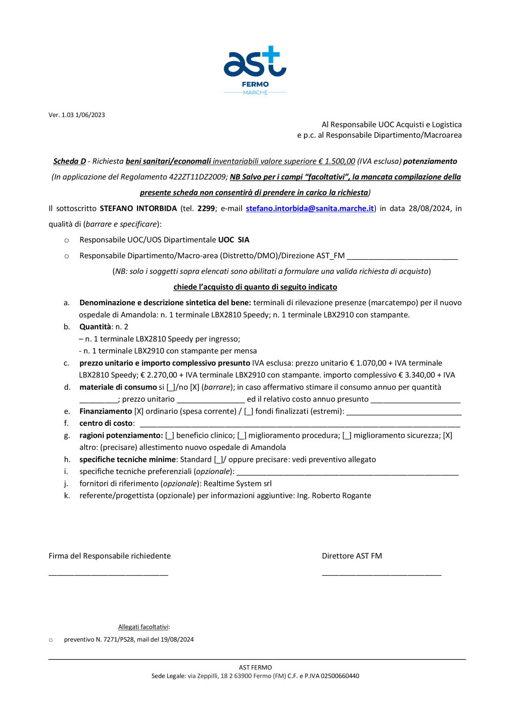 scheda di richiesta acquisto beni economali - Ospedale di Amandola