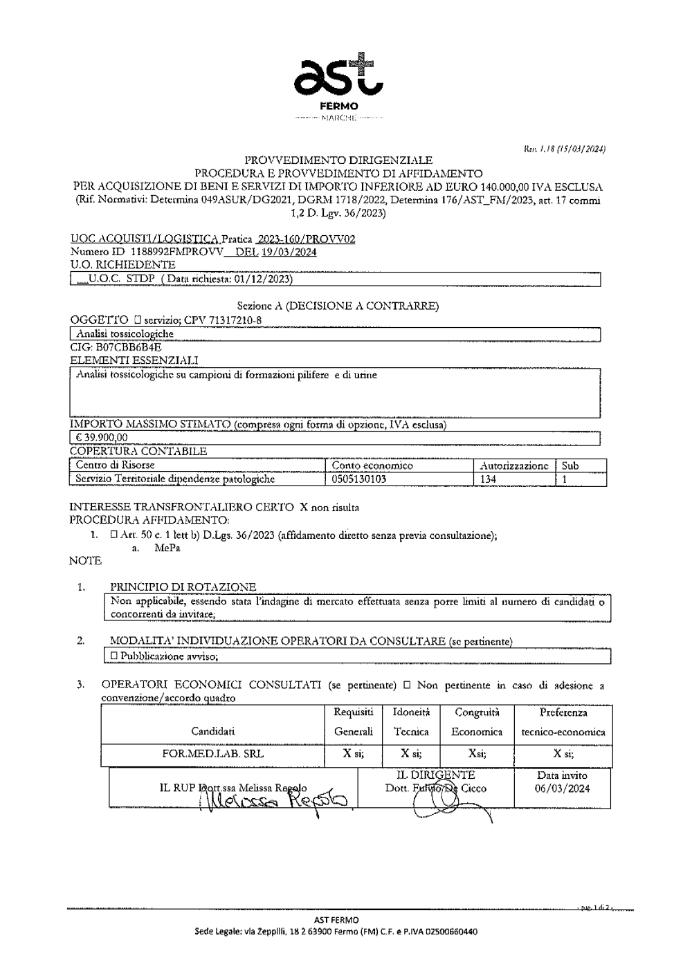 Ai sensi della L.R. Marche 19/2022 dal 01/01/2023 l'azienda ospedaliera "Ospedali Riuniti Marche Nord" è incorporata nell AST Pesaro Urbino che subentra a tutti gli effetti nell'attività e nei rapporti giuridici attivi e passivi.