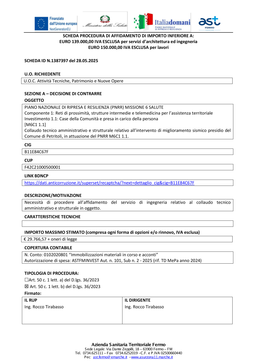 PNRR - SCHEDA ID N.1387397 del 28.05.2025- ING. STEFANO BABINI - Collaudo Petritoli