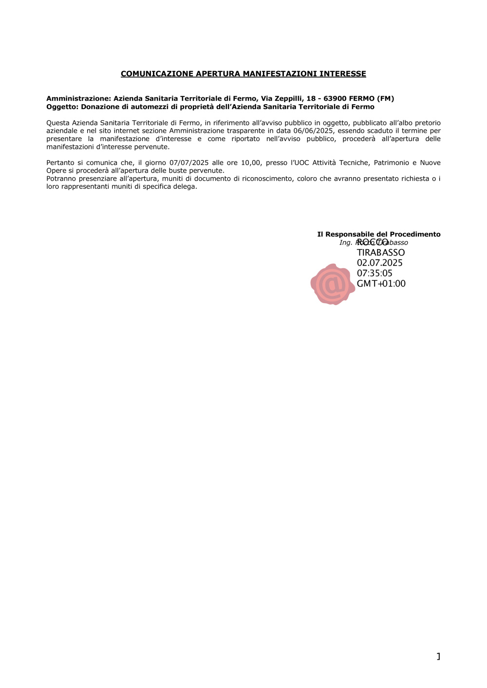 Comunicazione apertura manifestazioni interesse