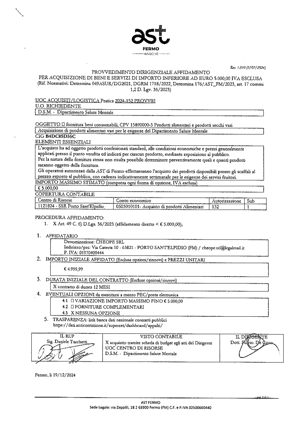 SCHEDA PROVVEDIMENTO CHEOPE SRL