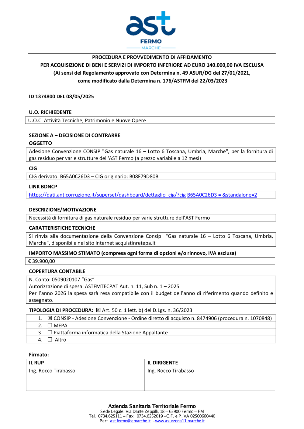 ID 1374800 DEL 08052025 - AGSM AIM Energia SpA-Conv. Consip Gas Natural e 16
