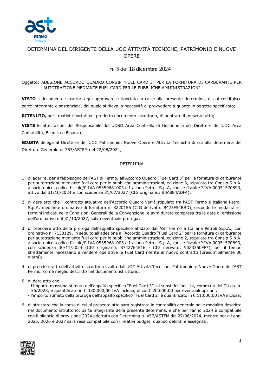 Det. n. 5 ASTTEC del 18.12.2024